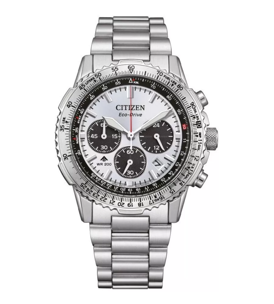 Tento pánský model je chronograf poháněny technologií Eco-Drive, která využívá světlo jako zdroj energie. Pouzdro je z nerezové oceli o průměru přibližně 40 mm. Ciferník je v bílé barvy s několika subciferníky pro chronograf a datovým okénkem mezi pozicemi 4 a 5 hodiny. Ciferník je chráněn safírovým sklem s antireflexní úpravou. Náramek je také z oceli, stříbrný s bezpečnostní skládací sponou. Vodotěsnost mají 200 m, což je dostačující pro šnorchlování i běžné vodní sporty.