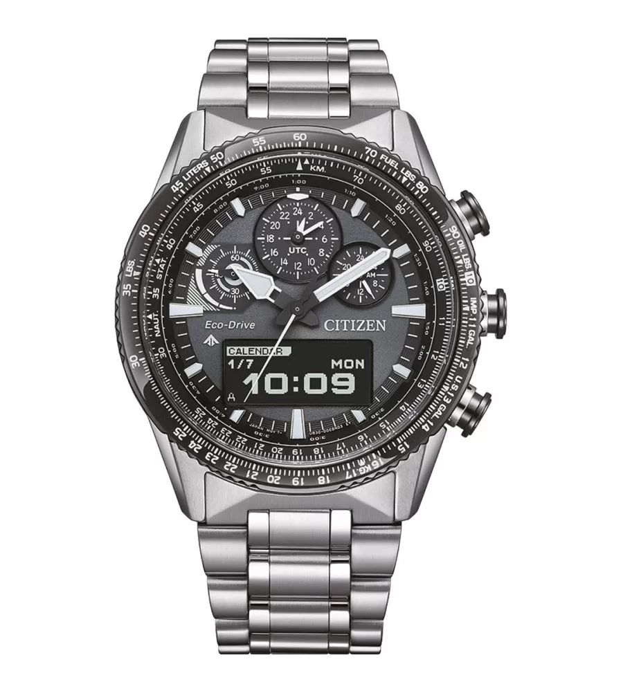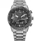Citizen JV2006-55H jsou moderní pánské hodinky s profesionální řady Promaster, které spojují odolné provedení s pokročilými funkcemi. Díky kombinaci analogového a digitálního displeje, nabízejí přehledné zobrazení času i široké škály doplňkových údajů. Robustní nerezové pouzdro a ocelový tah dodávají hodinkám výrazný technický vzhled a zároveň zajišťují vysokou odolnost při každodenním nošení. Model využívá solární technologii Eco-Drive, která přeměňuje světlo na energii, a tak odpadá nutnost výměny baterie. Safírové sklíčko s antireflexní úpravou garantuje maximální čitelnost a ochranu proti poškrábání. Díky vodotěsnosti 200 metrů jsou hodinky vhodné i proplavání.