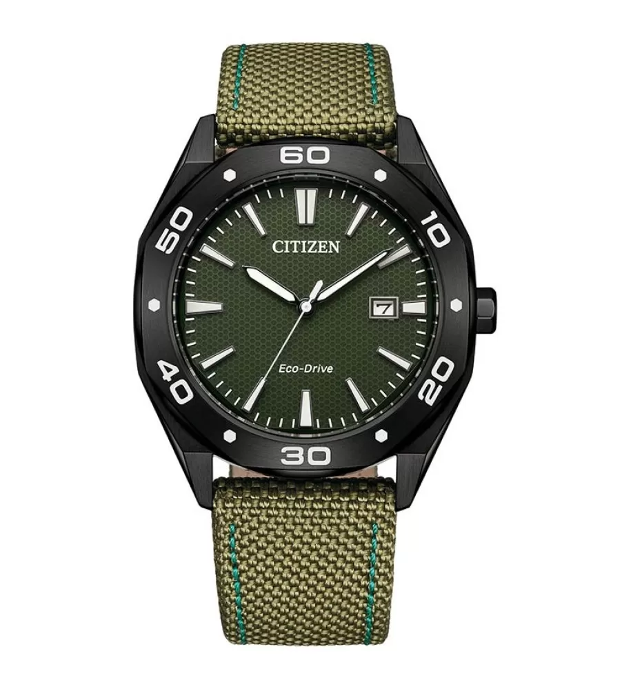 Hodinky jsou osazeny pohodlným zeleným textilním řemínkem, který podtrhuje sportovní styl a dobře sedí na zápěstí, zatímco vodotěsnost 10 ATM (100 m) umožňuje bezstarostné nošení při sprchování či plavání. Díky kombinaci atraktivního vzhledu, odolné konstrukce a solární technologie jsou tyto hodinky ideální volbou pro muže, kteří chtějí spolehlivý a stylový model pro každodenní nošení.