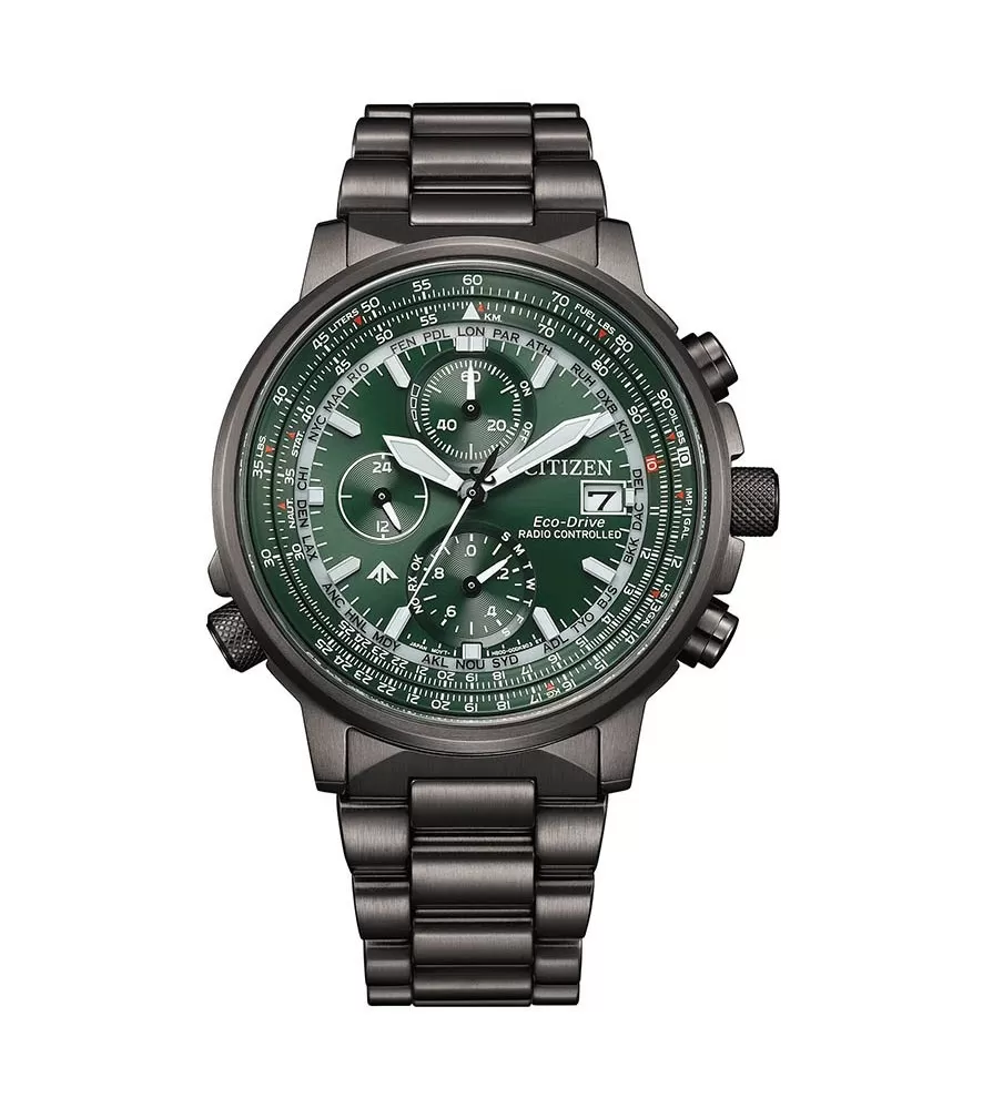 Pánské hodinky Citizen Promaster AT8304-57W patří do profesionální kolekce Promaster Sky inspirované pilotními hodinkami. Model spojuje sportovní design s pokročilými technologiemi značky Citizen a je navržen pro každodenní nošení i náročnější podmínky. O přesný chod se stará solární strojek Eco-Drive kalibr H800, který využívá světlo jako zdroj energie. Díky tomu není potřeba měnit baterii a hodinky mají při plném nabití rezervu chodu přibližně 180 dní. Navíc disponují funkcí radio-controlled, která automaticky synchronizuje čas pomocí signálu z atomových hodin v Evropě, USA, Číně a Japonsku, čímž zajišťuje maximální přesnost.