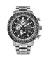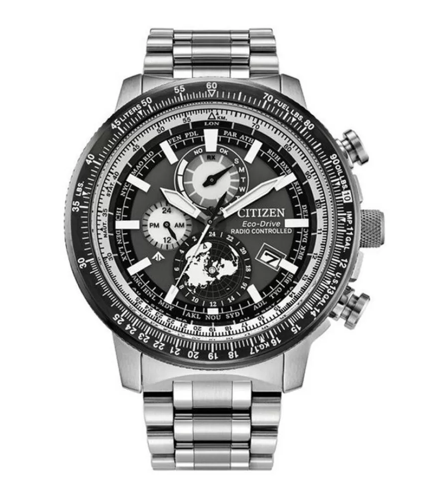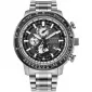 Model Citizen Promaster BY3006-53H jsou robustní pánské sportovní hodinky z řady Promaster Sky, navržené především pro cestování a letectví. Mají výrazné ocelové pouzdro o průměru přibližně 46 mm a černý ciferník se zelenými detaily a několika subciferníky, které zajišťují přehledné zobrazení různých funkcí. Hodinky jsou vybaveny technologií Eco-Drive, takže jsou napájeny světlem a není nutné měnit baterii. Díky rádiovému řízení času (Radio-Controlled) se automaticky synchronizují s atomovými hodinami, což zajišťuje extrémně přesný čas kdekoliv na světě.