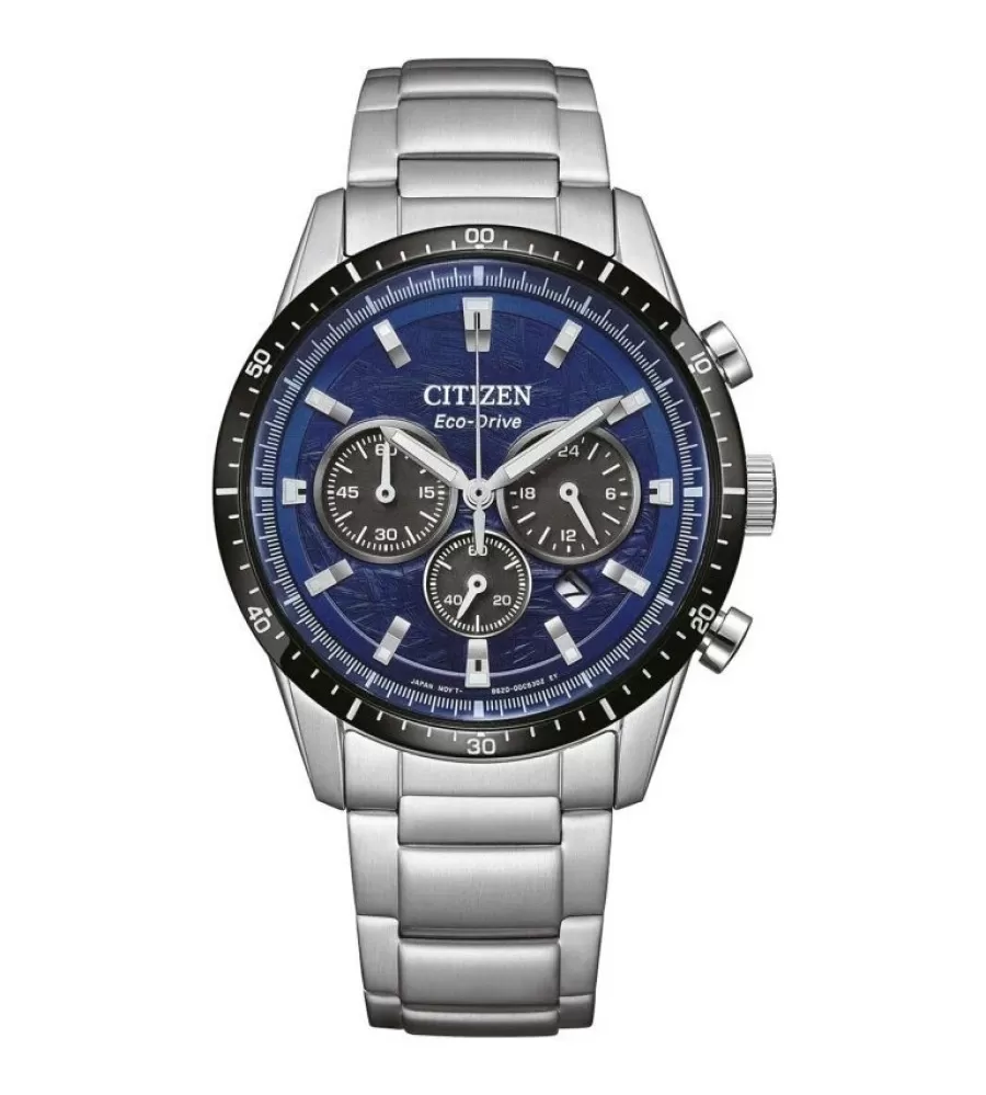 Model Citizen CA4624-56L jsou pánské sportovní hodinky s moderním a univerzálním designem, které se hodí jak pro každodenní nošení, tak i pro aktivnější životní styl. Pouzdro i náramek jsou vyrobeny z nerezové oceli a díky průměru kolem 39–40 mm působí hodinky kompaktně a pohodlně na ruce. Dominantou je modrý ciferník s jemnou texturou, doplněný o kontrastní subciferníky pro funkci chronografu (stopky) a 24hodinový ukazatel. Nechybí ani datumovka a luminiscenční ručičky s indexy, které zajišťují dobrou čitelnost i za horších světelných podmínek.