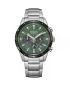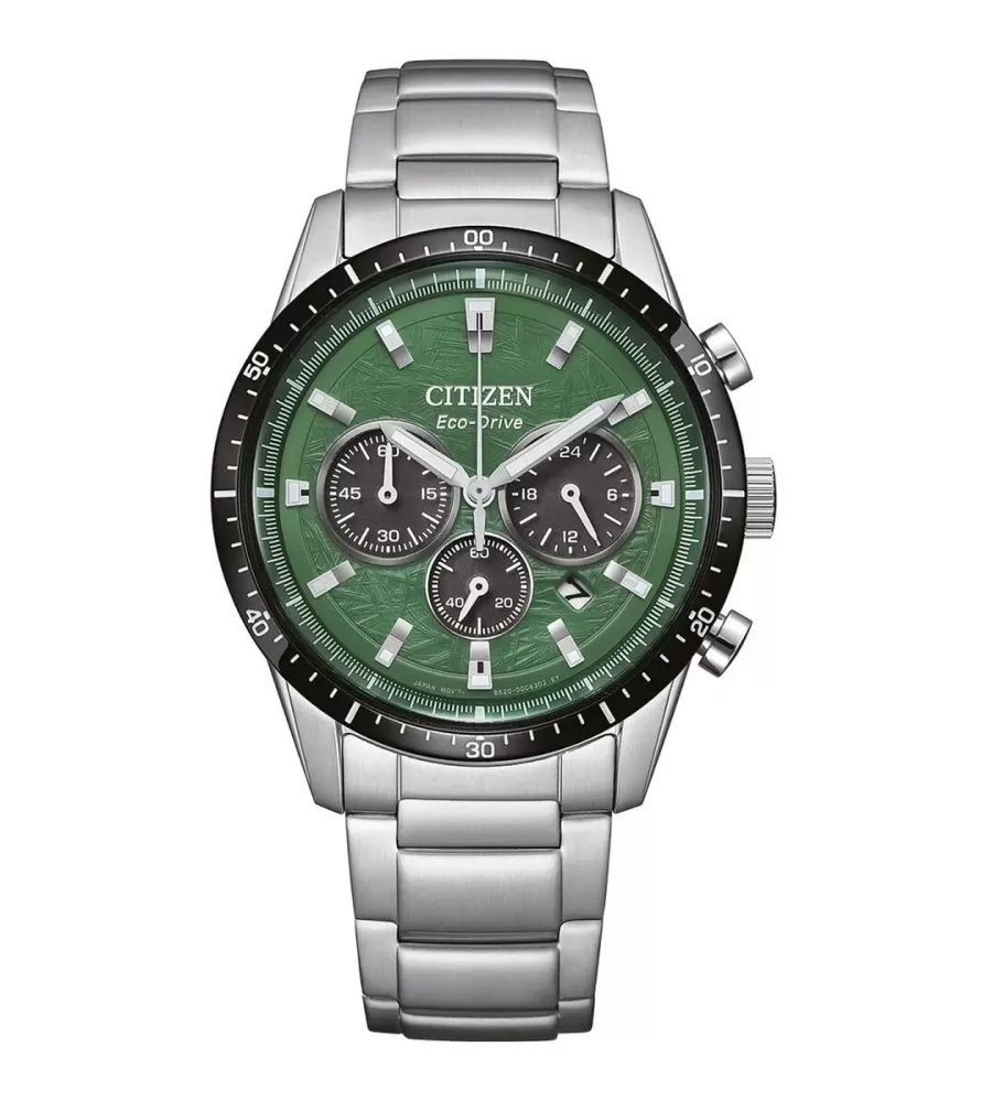 Dominantou je zelený ciferník s jemnou texturou, doplněný o kontrastní subciferníky pro funkci chronografu (stopky) a 24hodinový ukazatel. Nechybí ani datumovka a luminiscenční ručičky s indexy, které zajišťují dobrou čitelnost i za horších světelných podmínek.