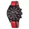 Tento model sportovních hodinek s červeným koženým řemínkem a středovým černým pruhem navazuje na černé pouzdro s černým číselníkem, které je ozvláštněno červenými prvkami. Jsou vhodné na každodenní nošení. Kolekce Lotus R vás na první pohled upoutá svým barevným vzhledem a živostí. Jsou pro sportovně založené muže, který se nebojí barev a dokážou kombinovat hodinky s oblečením. Černěná ocel ošetřená PVD dodává hodinkám jiný rozměr. Muži zároveň ocení u kolekce stopky, datum, kožený anebo kaučukový řemínek.