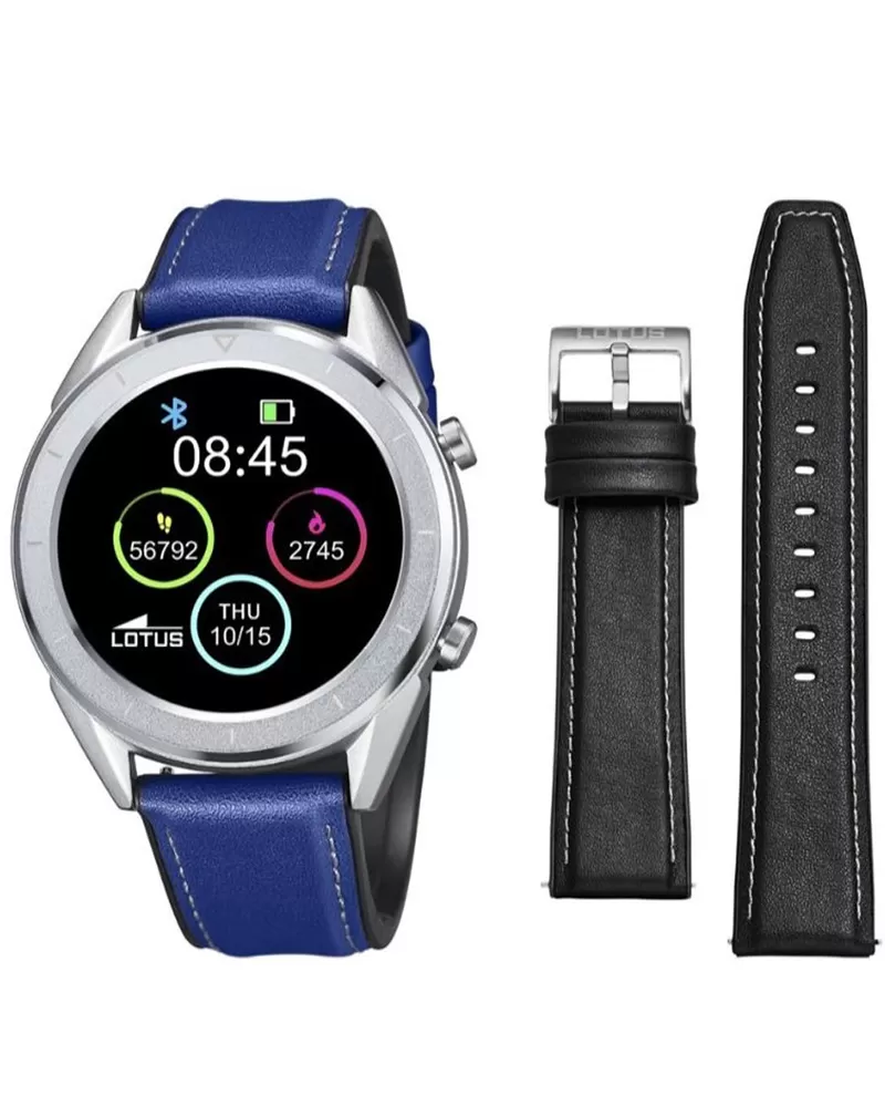 Sportovní hodinky v elegantním designu mají ocelové masivní ocelové pouzdro a kožený řemínek v modré barvě. Hodinky jsou vybaveny lithiovou baterií, jejíž plné nabití pomocí magnetické nabíječky trvá přibližně 2 hodiny, přičemž při běžném užívání vydrží zhruba 5 dní. Díky vodotěsnosti IP68 s nimi můžete plavat do hloubky 10 metrů a jsou zároveň prachotěsné.