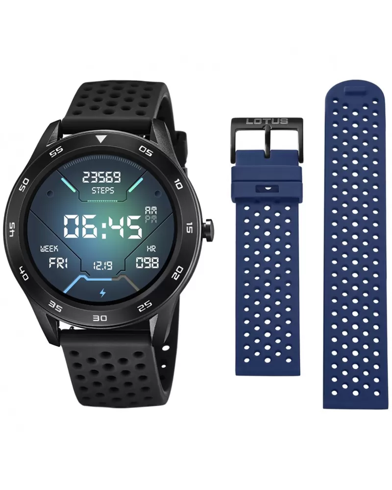 Multifunkční hodinky Lotus SMARTIME budou vaším všestranný pomocníkem. Hodinky mají kulaté pouzdro z nerezové oceli s PVD úpravou v černé barvě. Pouzdro doplňuje kaučukový řemínek s klasickou ocelovou přezkou. Hodinky jsou vybaveny lithiovou baterií, jejíž plné nabití pomocí magnetické nabíječky trvá přibližně 2 hodiny, přičemž při běžném užívání vydrží zhruba 5 dní. Díky vodotěsnosti IP68 s nimi můžete plavat do hloubky 10 metrů a jsou zároveň prachotěsné.