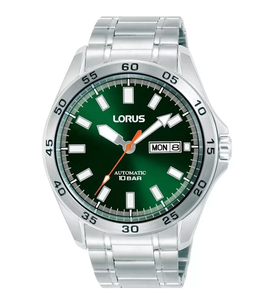 Pánské hodinky Lorus RL423CX9 zaujmou robustním sportovně-elegantním designem, který je vhodný pro každodenní nošení i aktivnější životní styl. Kulaté ocelové pouzdro o průměru 43 mm doplňuje přehledný zelený analogový ciferník s luminiscenčními ručičkami a indexy, díky nimž je čas snadno čitelný i za zhoršených světelných podmínek. Minerální sklíčko chrání ciferník před poškrábáním a průhledné dýnko umožňuje pohled na spolehlivý mechanický strojek s automatickým nátahem. Ocelový tah působí pevně, komfortně se nosí a podtrhuje celkově kvalitní zpracování hodinek. Vodotěsnost 10 ATM umožňuje bezstarostné používání při běžném kontaktu s vodou, sprchování i plavání, zatímco praktické funkce zobrazení data a dne v týdnu zvyšují každodenní využitelnost tohoto modelu.