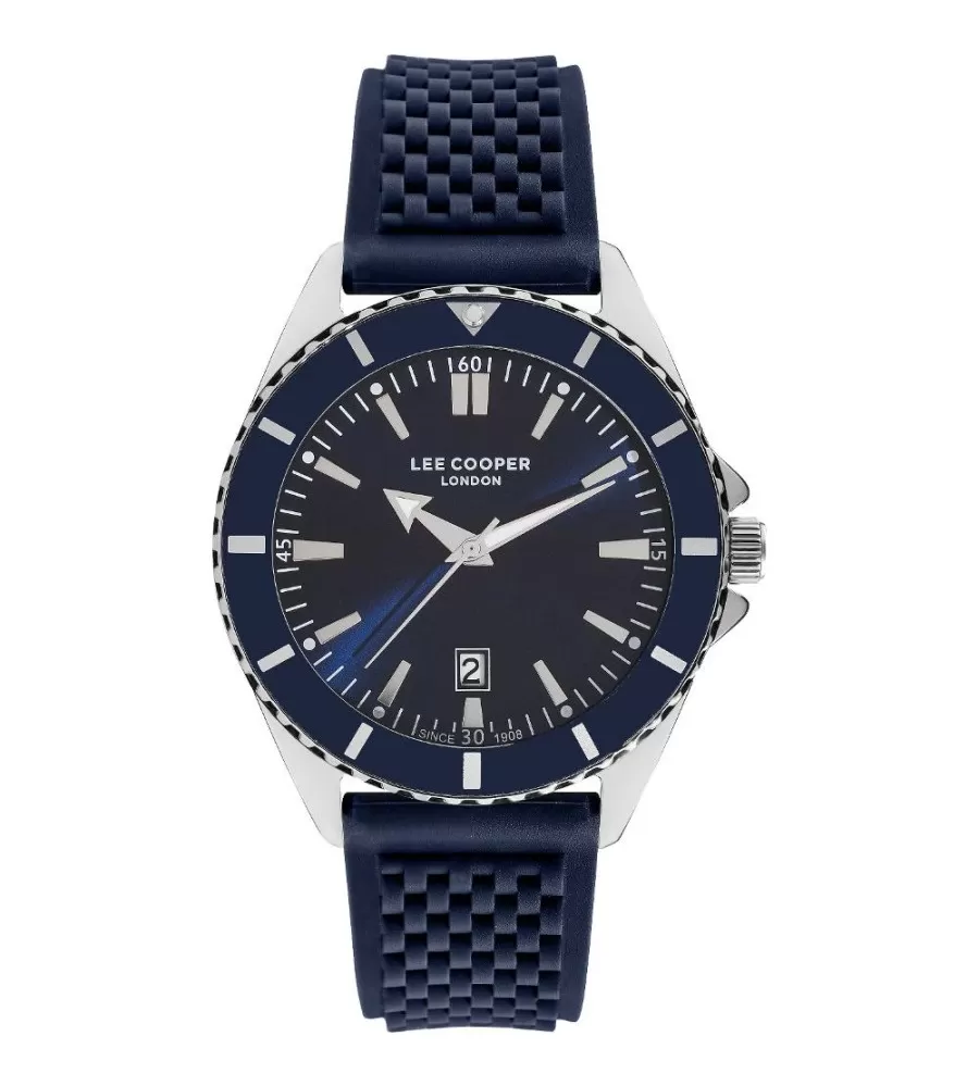 Hodinky Lee Cooper LC07361.399  jsou pánské analogové hodinky s kulatým pouzdrem s kovu o průměru 44 mm, provedeným ve stříbrné barvě. Mají silikonový tah v modré barvě a kovovou přezku. Hodinky jsou poháněny bateriovým strojkem, sklíčko je minerální a umožňují zobrazení data. Jsou odolné vůči vodě při běžném nošení.