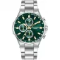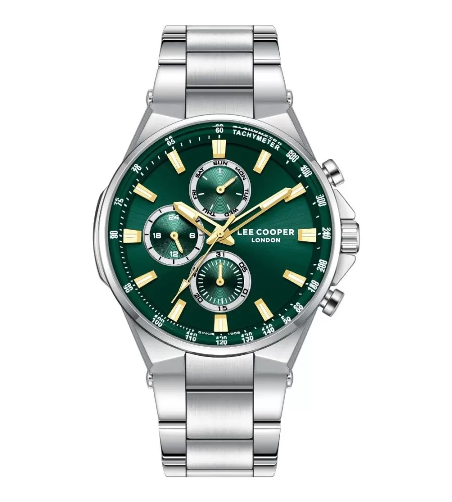 Sportovní náramkové hodinky pro muže jsou ideálním doplňkem pro každý den. Hodinky jsou vyrobeny z kvalitního kovu. Uvnitř pracuje přesný bateriový strojek. Ciferník je zelený, zdobí ho jednoduché indexy, kryje jej minerální sklo odolné proti nárazům a běžnému poškrábání. Navíc obsahuje datum a dny v týdnu. Průměr ciferníku je 42 mm a pouzdro vodotěsnost je 30ATM.