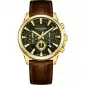 Elegantní model se sportovním nádechem pro muže má kovové pouzdro ve zlaceném provedení a kožený řemínek v příjemné hnědé barvě s kovovou sponou.… Celý popis