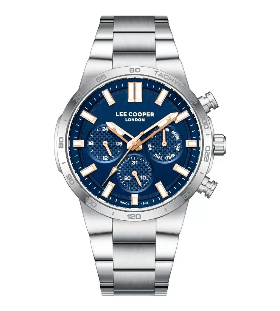 Sportovní model vyroben z kvalitního kovu. Hodinky mají masivní pouzdro o průměru 43 mm, zdobený stříbrnou lunetou. Dominantou modelu je ciferník v modré barvě se zlatými doplňky. Navíc má k dispozici datum a dny v týdnu. Do tohoto modelu se zamilujete.