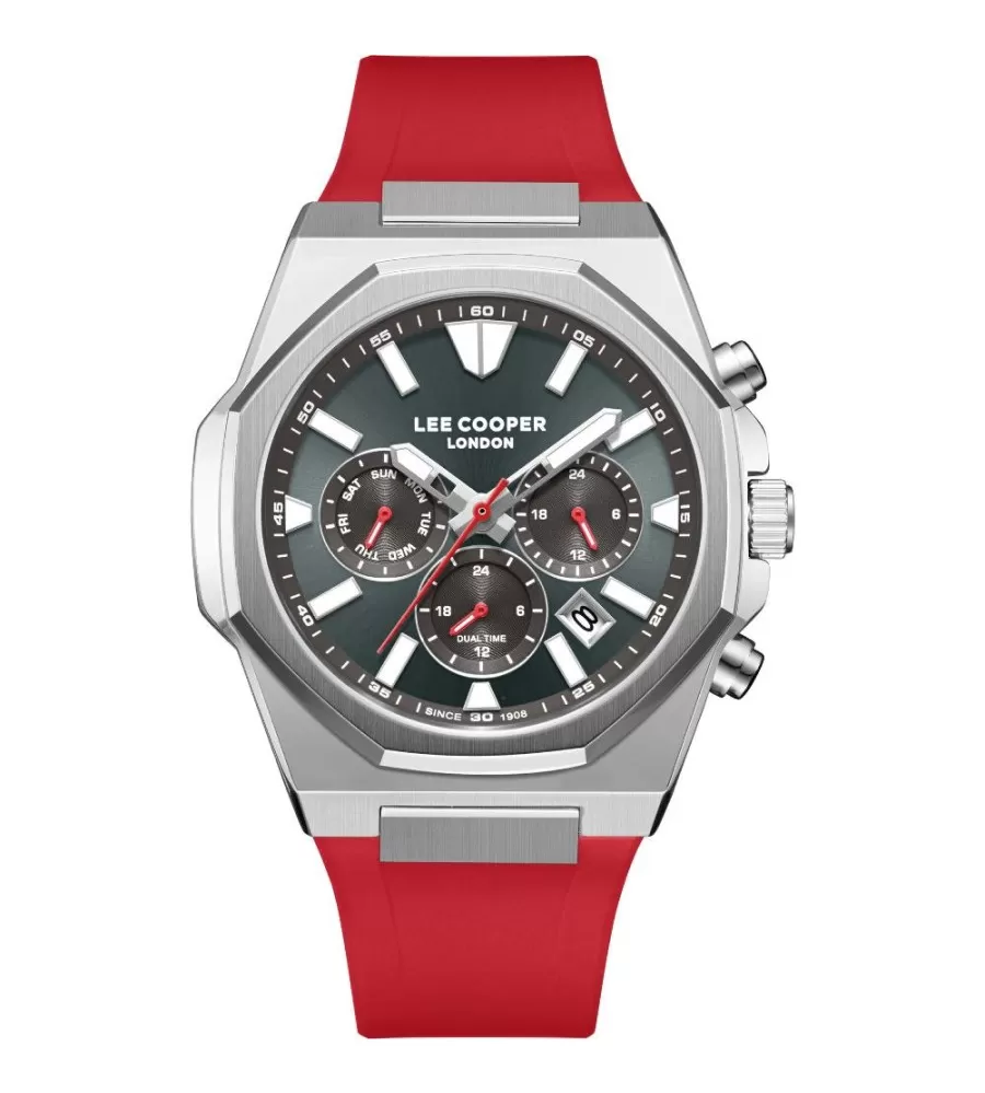 Pánské náramkové hodinky mají osmihranné pouzdro vyrobeno z kvalitního kovu o průměru 44 mm. Zaujme Vás přehledný číselník v černé barvě, který má k dispozici datum a dny v týdnu. Pánský model doplňuje silikonový řemínek, který je velmi oblíbený pro svou pohodlnost, například při sportu. Hodinky jsou vhodné pro každodenní nošení.