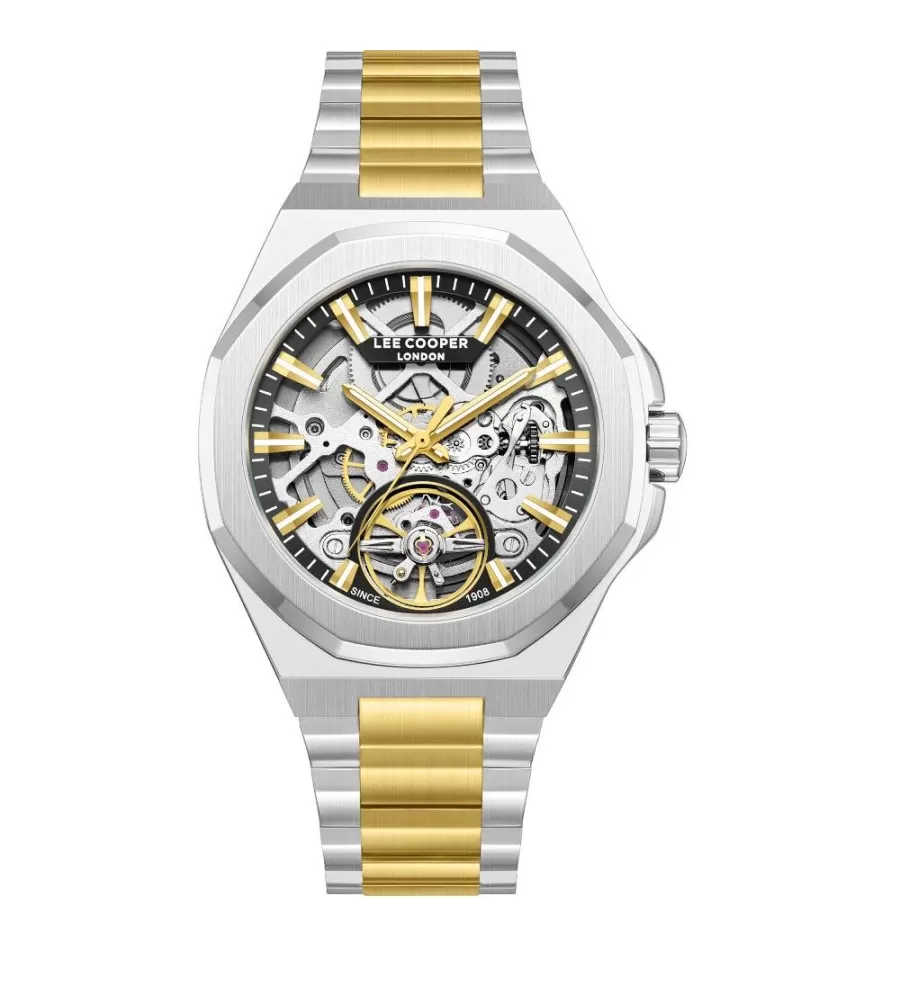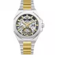 Luxusní model pánských náramkových hodinek disponuje mechanickým strojkem, který můžete vidět přes číselník. Hodinky jsou zhotoveny z kvalitního kovu, který je místy ošetřen PVD povrchovou úpravou v barvě žlutého zlata. Tento unikátní model je vhodný pro každodenní nošení i do společnosti.