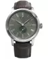 Hodinky Orient Star RE-BS0001E00B představují elegantní model z řady Contemporary M45, který kombinuje klasický vzhled s moderními detaily a precizním japonským zpracováním. Dominantou je výrazný zelený ciferník se zrnitou (granulární) texturou, která vytváří zajímavou hru světla a dodává hodinkám hloubku i originalitu. Design doplňují aplikované římské číslice, listové ručky a subciferník malé vteřinové ručky, díky čemuž působí velmi sofistikovaně.