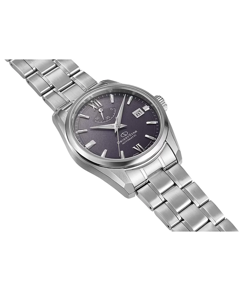 Hodinky Orient Star RE-AU0112V00B patří do moderní řady Contemporary a zaujmou především svým netradičním, ale velmi elegantním designem, který kombinuje klasické prvky s výraznější barevností. Dominantou modelu je fialový ciferník, který působí originálně a mění odstín podle dopadu světla – díky tomu hodinky působí na ruce živě, ale stále dostatečně decentně pro každodenní nošení.