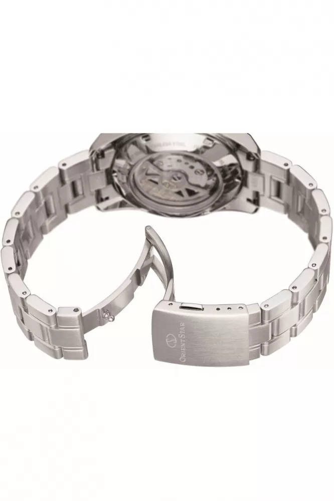 Orient Star RE-AU0006S00B jsou neuvěřitelně elegantní hodinky, které se velmi dobře hodí téměř pro každou příležitost. Pouzdro a řemínek je vyrobeno z nerezové oceli, která vyniká svou barevnou stálostí a vysokou odolností. Hodinky mají indikátor rezervy chodu na pozici 12 a ukazatel data. Černý ciferník chrání odolné safírové sklíčko s antireflexní úpravou. Zadní dýnko je průhledné a šroubovací.