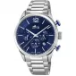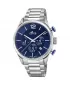 Tento model jsou pánské hodinky z kolekce Chrono, které kombinují sportovní funkce s elegantním vzhledem. Mají kulaté pouzdro z nerezové oceli o průměru přibližně 43 mm a tloušťce kolem 11 mm. Modrý ciferník je chráněn minerálním sklem a doplňují jej tři chronografy s funkcí stopek, 24hodinovým subciferníkem a datumovým okénkem. Hodinky jsou poháněny quartzovým strojkem Miyota MJS25 a mají ocelový tah s překlápěcí sponou. Vodotěsnost dosahuje 100 ATM, což znamená, že jsou vhodné pro plavání a běžné vodní aktivity.