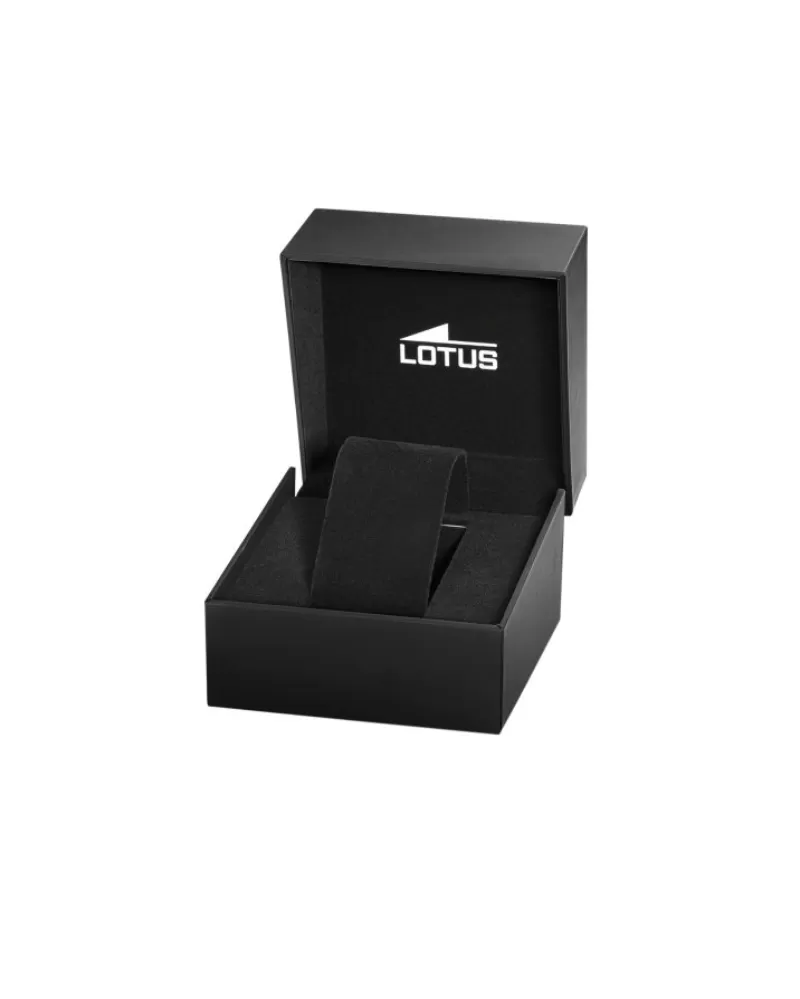 Sportovní model hodinek v černém provedení zaujme červenými prvkami a červeným tlačítkem k stopkám. Bílé číselníky na černém pozadí nechají vyniknout celkovému dizajnu. Hodinky jsou doladěné černým koženým řemínkem s červeným prošitím. Kolekce Lotus R vás na první pohled upoutá svým barevným vzhledem a živostí. Jsou pro sportovně založené muže, který se nebojí barev a dokážou kombinovat hodinky s oblečením. Černěná ocel ošetřená PVD dodává hodinkám jiný rozměr. Muži zároveň ocení u kolekce stopky, datum, kožený anebo kaučukový řemínek.