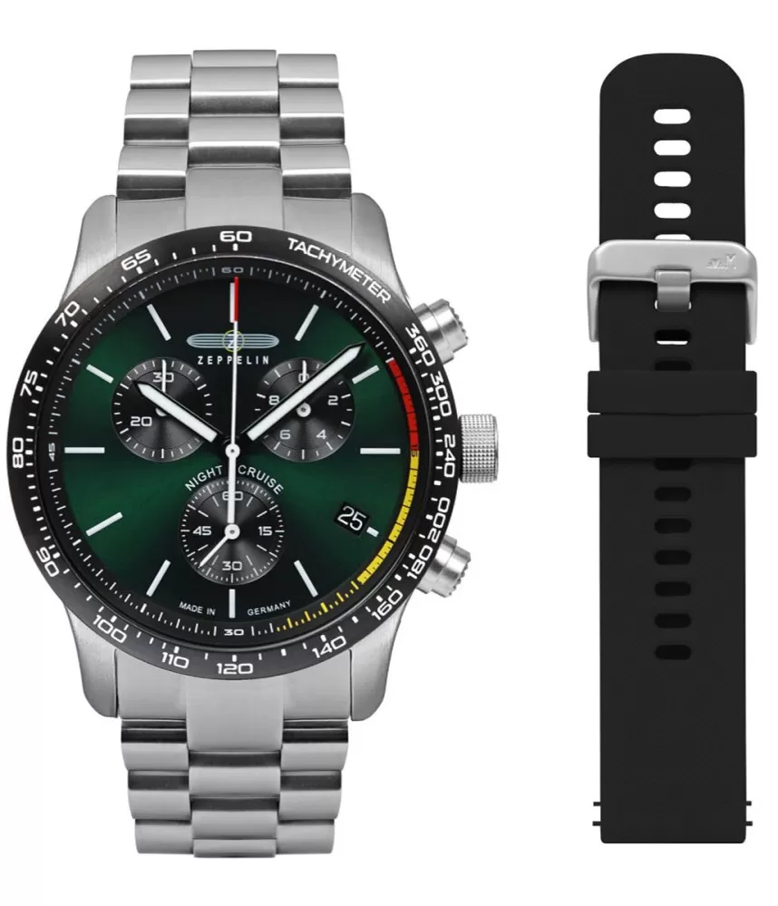Pánské hodinky Zeppelin Night Cruise Quartz 7288M‑4_Set jsou sportovně‑elegantní chronografy s robustním designem a kvalitním zpracováním, které vás provedou jak každodenním nošením, tak aktivními okamžiky během dne. Hodinky vycházejí z modelové řady Night Cruise, která kombinuje moderní funkce s precizí německé hodinářské tradice značky Zeppelin.