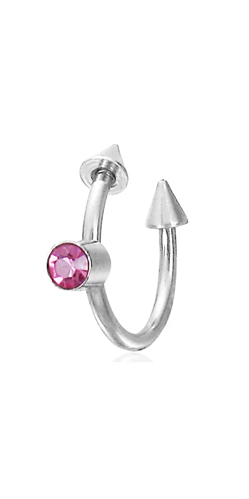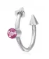 Moderní piercing nejen do bradavky je vyrobený z chirurgické oceli v lesklé povrchové úpravě. Piercing je ozdoben hroty a růžovým zirkonem.