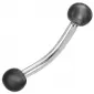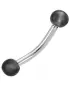 Moderní piercing do obočí je vyrobený z chirurgické oceli v lesklé povrchové úpravě. Piercing je ozdoben černými kuličkami.