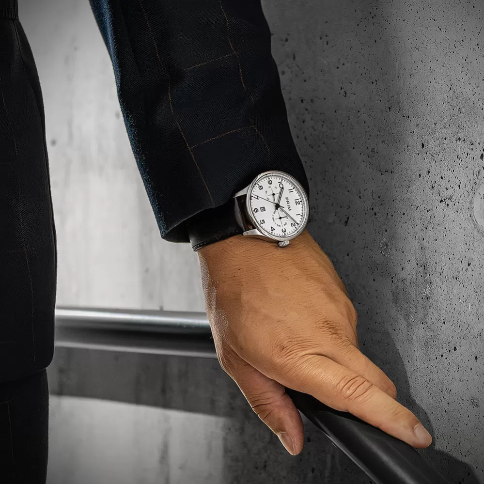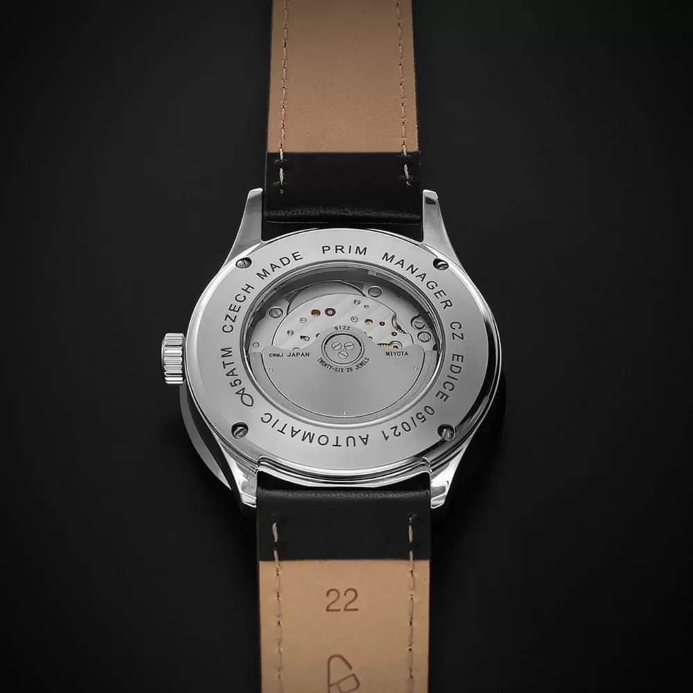 Model PRIM Manager přináší sportovně elegantní charakter s velkým pouzdrem o průměru 45 mm a výškou 15 mm. Je poháněn automatickým strojkem Miyota 9122, který nabízí funkce data, dne v týdnu i měsíce. Ciferník je chráněn safírovým sklem s antireflexní vrstvou. Pouzdro je vyrobeno z oceli. Vodotěsnost 5 ATM umožňuje běžné každodenní použití bez obav z vlhkosti či deště.