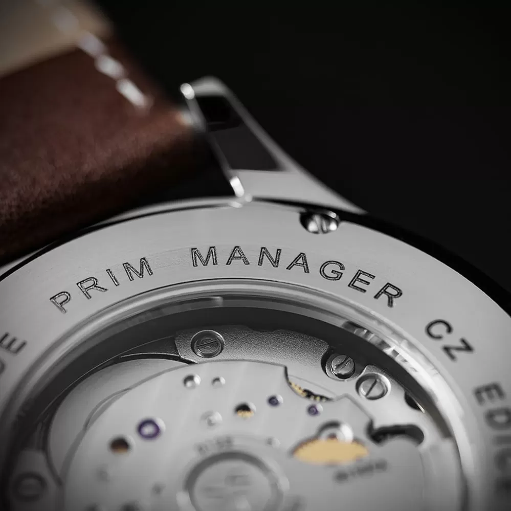 Model PRIM Manager přináší sportovně elegantní charakter s velkým pouzdrem o průměru 45 mm a výškou 15 mm. Je poháněn automatickým strojkem Miyota 9122, který nabízí funkce data, dne v týdnu i měsíce. Ciferník je chráněn safírovým sklem s antireflexní vrstvou. Pouzdro je vyrobeno z oceli. Vodotěsnost 5 ATM umožňuje běžné každodenní použití bez obav z vlhkosti či deště.