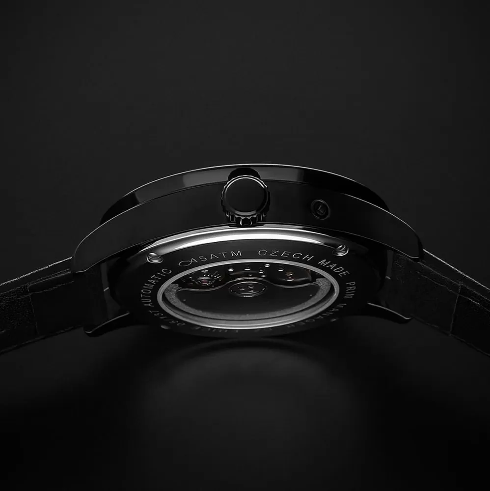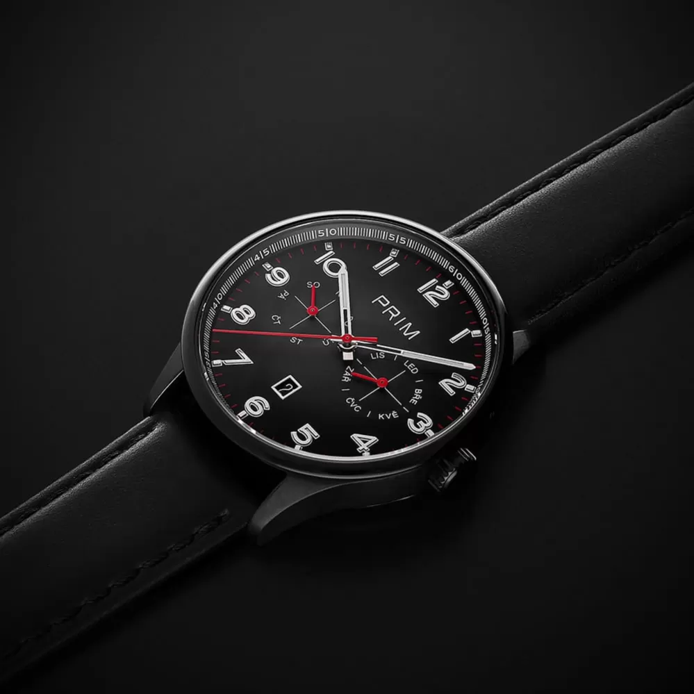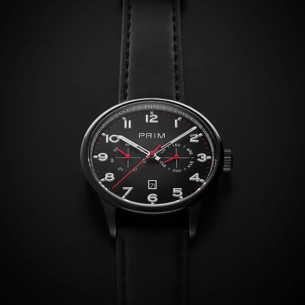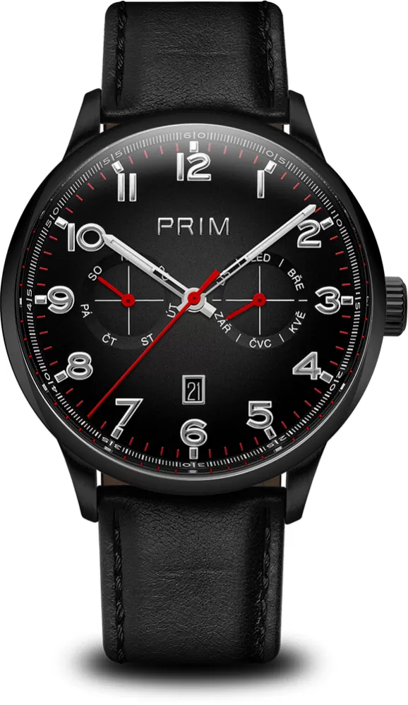 Model PRIM Manager je sportovně elegantní s velkým pouzdrem o průměru 45 mm a výškou 15 mm. Je poháněn automatickým strojkem Miyota 9122, který nabízí funkce data, dne v týdnu i měsíce. Ciferník je chráněn safírovým sklem s antireflexní vrstvou a doplněn vystouplými indexy s luminiscencí. Pouzdro je vyrobeno z oceli s černým IPB povrchem, což dodává hodinkám moderní a sebevědomý vzhled. Vodotěsnost 5 ATM umožňuje běžné každodenní použití bez obav z vlhkosti či deště.