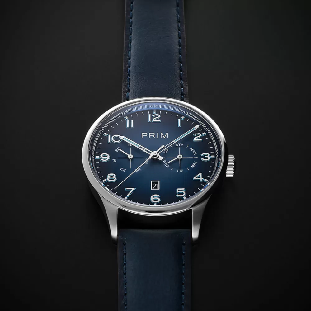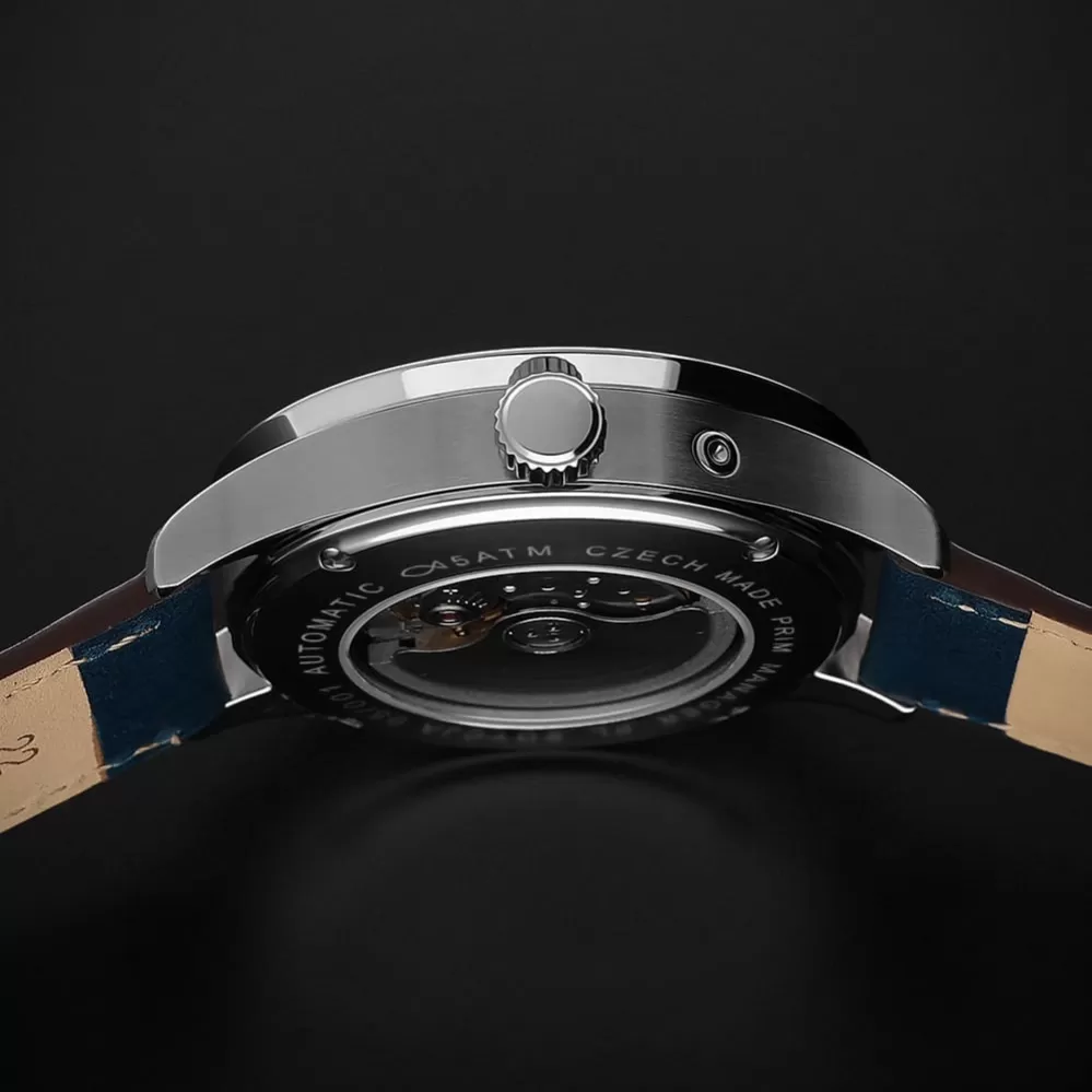PRIM MANAGER 2025 je sportovně elegantní pánský model, který po deseti letech přináší novou generaci oblíbené řady s modernějším designem a technikou. Uvnitř tiká spolehlivý automatický kalibr MIYOTA 9122, chráněný pouzdrem z ušlechtilé oceli a safírovým sklíčkem s dvojitou antireflexní vrstvou. Moderní gradientní číselník s luminiscencí Super-LumiNova zaručuje skvělou čitelnost ve dne i v noci. Transparentní dýnko umožňuje nahlédnout na precizní chod strojku. Model je dostupný v několika barevných variantách s koženým řemínkem a nabízí vodotěsnost 5 ATM.