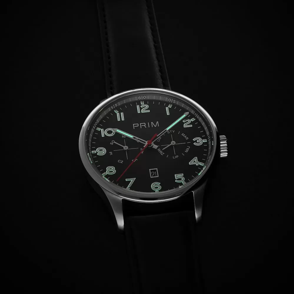 PRIM MANAGER 2025 – sportovně elegantní model v různých barevných provedeních. Spolehlivý automat s kalibrem Miyota 9122, safírovým sklem a podsvícenými indexy, který zaujme na každé pánské ruce.
