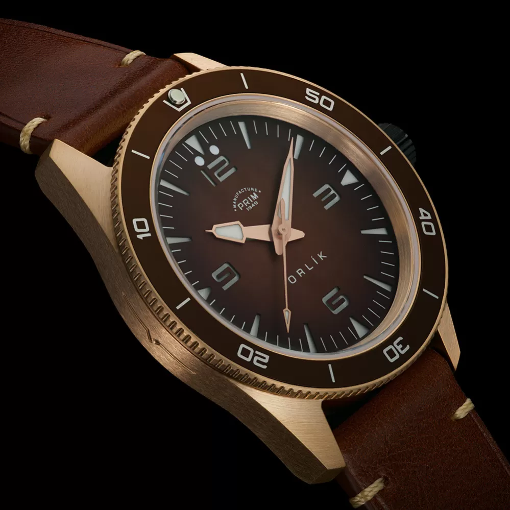 Limitovaná edice PRIM Orlík 38 Bronz vzdává hold legendárnímu modelu z 60. let, původně určenému pro československou armádu. Nová verze zachovává původní průměr 38 mm a věrně navazuje na historický design. Moderní řemeslné zpracování spojuje respekt k tradici se současnými nároky na funkčnost. Bronzové pouzdro propůjčuje hodinkám výrazný a nezaměnitelný charakter. Díky přirozené patině získává každý kus postupem času jedinečný a osobitý vzhled.