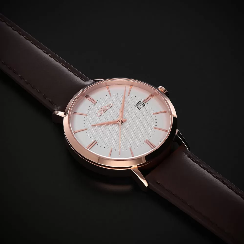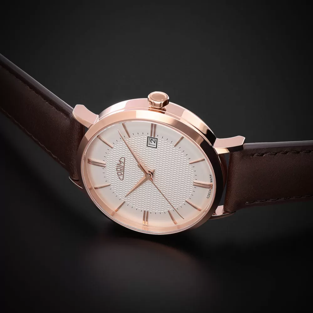Elegance inspirovaná 60. lety minulého století se u automatických hodinek PRIM Tempo Essence promítá do jemných, čistých a noblesních linií. Nadčasový design v několika barevných provedeních zaujme při každém pohledu na zápěstí a je ideální pro každodenní nošení i výjimečné okamžiky. Minimalistický číselník s jemnými indexy a datem v barvě číselníku vzdává hold českému hodinářskému světu. O spolehlivý chod se stará japonský automatický strojek Miyota 8315 s funkcí data. Klenutý číselník, dvojité klenuté safírové sklíčko a japonská luminiscence zajišťují eleganci i perfektní čitelnost za každých podmínek. PRIM Tempo Essence je stylový šperk, který harmonicky spojuje noblesu, praktičnost a spolehlivost.