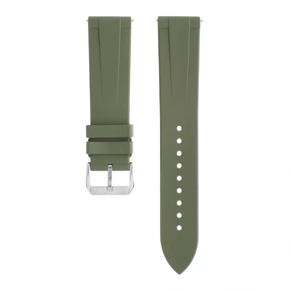 Velice pohodlný hodinkový řemínek PRIM z příjemného FKM (fluoroelastomer) materiálu. Řemínek je vybaven funkcí rychloupínací funkcí Easy-click. Tento materiál je vysoce odolný vůči teplu, potu, vodě a UV záření. Díky své pružnosti řemínek nepraská ani netvrdne jako je tomu u levných silikonových a pryžových řemínků. Vyznačuje se dlouhou životností. Svou oblibu si získal také díky svým antialergenním vlastnostem, nelepí se na kůži, má jemně sametový povrch a nepřitahuje prach. Vhodný pro každodenní nošení i sportovní aktivity. Šíře řemínku je 20 mm.