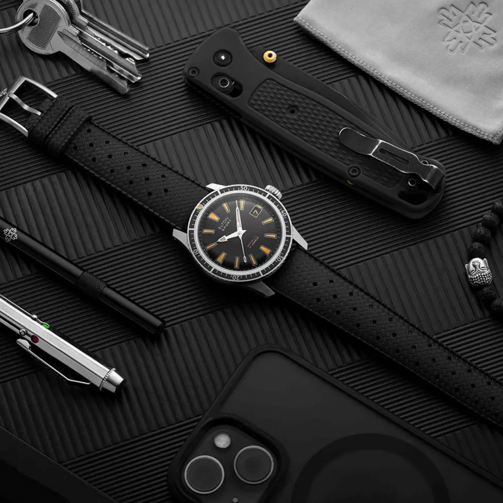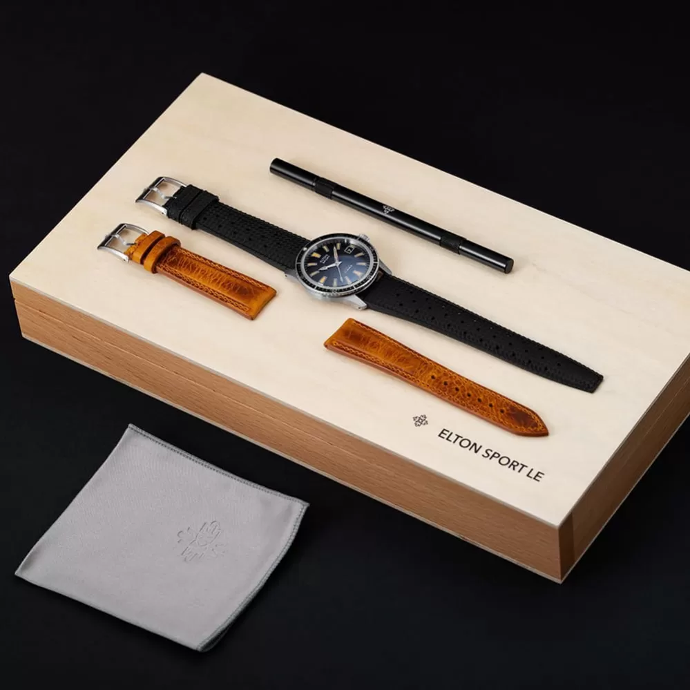 Limitovaná edice ikonických sportovních hodinek ELTON SPORT propojuje tradici s inovací. Inspirací se stal legendární model z roku 1969, první civilní sportovní hodinky z Nového Města nad Metují. Modernizované provedení zachovává historický odkaz a přináší současné technické zpracování. Každý kus je dodáván se dvěma originálními řemínky – voděodolným kaučukovým ve vintage stylu a elegantním koženým v hnědé barvě s prošitím. Součástí balení je také praktický stěžejkovač pro snadnou výměnu řemínků. Edice je vyrobena v počtu pouhých 50 kusů.