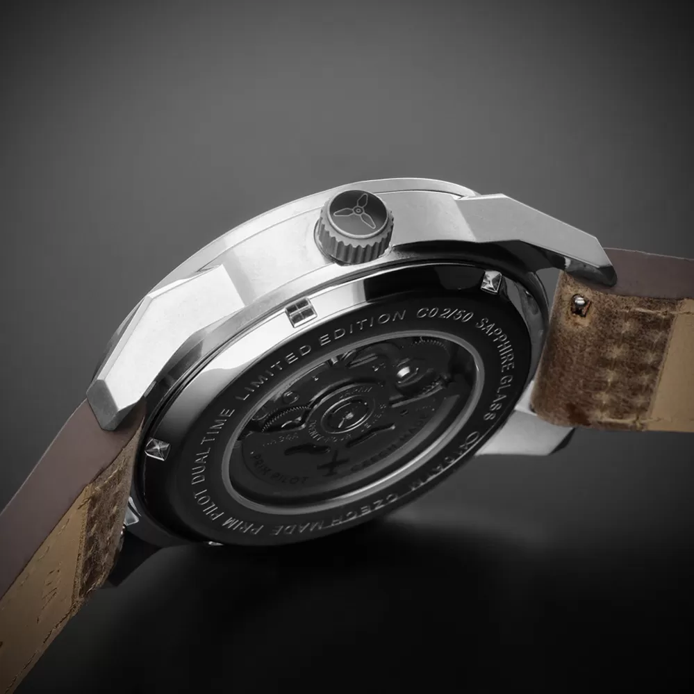 Hodinky PRIM Pilot Dual Time jsou stvořený pro sportovní nadšence. Automatické hodinky se safírovým sklem a luminiscenčními indexy jsou dominantním znakem pilot hodinek. Znalci neunikne silueta legendárního československého cvičného letounu Albatros L-39. Limitovaná edice hodinek je vyrobena na počest aviatiky v počtu 50 ks od každé ze 4 barevných variant.