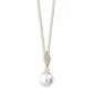 Perlový přívěsek je vyrobený ze žlutého čtrnáctikarátového zlata 585/1000 v lesklé povrchové úpravě. Přívěsek je navíc osazený zářivými zirkony a bílou perlou. Podle systému ohodnocení perel je kvalita této sladkovodní perly AAA - jedná se nejvyšší kvalitu perly. Povrch má velmi vysoký lesk a minimálně 95 % povrchu perly je bez jakéhokoli typu poškození. Elegantní perlový přívěsek si jistě oblíbíte, jelikož je vhodný na každodenní nošení i do společnosti. Perlové šperky jsou symbolem urozenosti a elegance.