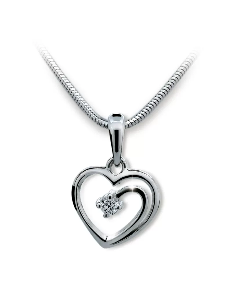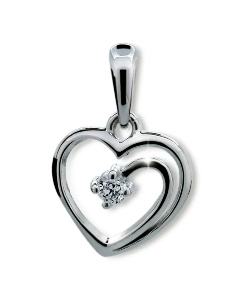 Dokonalý dárek pro vaší milovanou je toto nádherné srdce, které je vyrobeno z bílého čtrnáctikarátového zlata 585/1000. Zlatý přívěsek je vyroben v lesklé povrchové úpravě a je osazen jedním zářivým zirkonem. Tímto dokonalým šperkem určitě zabodujete.