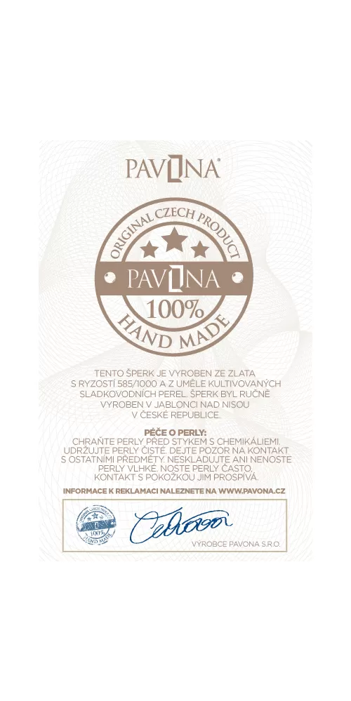 Pravost říční perly vám doloží certifikát pravosti, který je ke šperku přiložen.