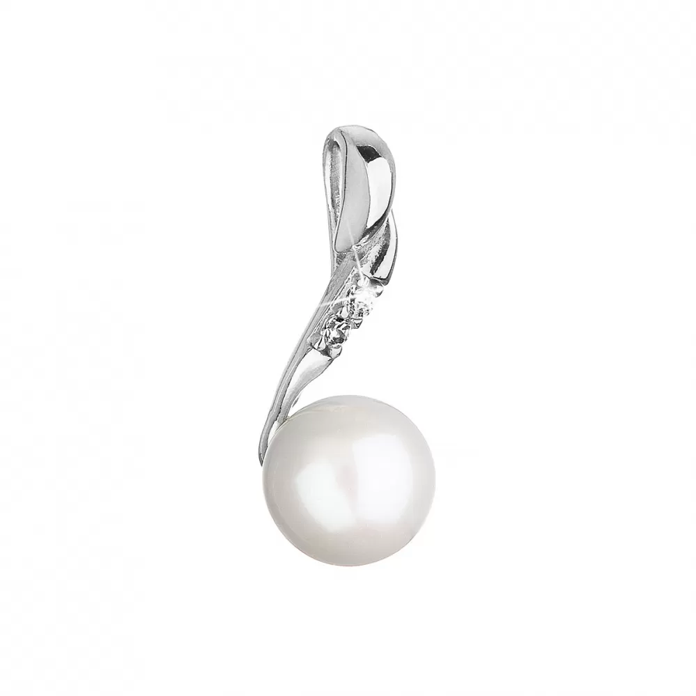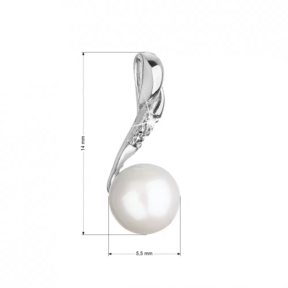 Přívěsek 84PZ00007 je vyroben ze 14karátového bílého zlata s ryzostí 585/1000 lehce přizdobený zirkony s krásnou kulatou říční perlou té nejvyšší kvality AAA. Šířka perličky je 5,5-6 mm.