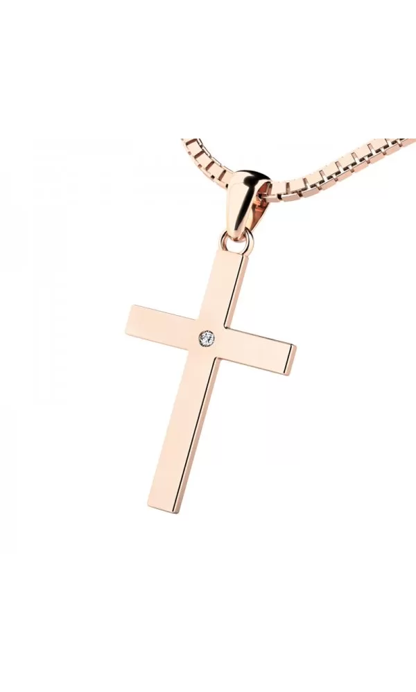 Velmi oblíbený přívěsek ve tvaru kříže, působí velmi luxusně a decentně. Přívěsek je vyroben z růžového čtrnáctikarátového zlata - 585/1000 v lesklé povrchové úpravě. V křížku je vsazen jeden kulatý zirkon. Tento přívěsek je nejen krásným doplňkem, ale také výjimečným vyjádřením osobního stylu a vyznání. Ideální pro každodenní nošení nebo jako výrazné vyjádření víry, zkrátka šperk, který přitahuje pozornost svým unikátním spojením krásy a symboliky.
