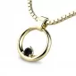 Přívěsek ve tvaru kroužku je vyroben ze žlutého čtrnáctikarátového zlata - 585/1000 v lesklé povrchové úpravě s jedním kulatým černým zirkonem. Každý detail je pečlivě zpracován, aby vás obklopil jedinečným leskem a působivým vzhledem. Buďte v centru pozornosti s tímto šperkem, který nejenže ozdobí vaši krásu, ale také podtrhuje vaši individualitu.