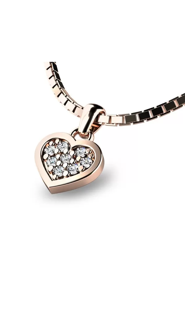 Chcete zapůsobit na vaší druhou polovičku? Rozzařte jí dekolt přívěskem ve tvaru srdce. Tento nádherný, zářivý přívěsek je vyroben z růžového čtrnáctikarátového zlata - 585/1000 v lesklé povrchové úpravě. Buďte v centru pozornosti s tímto šperkem, který nejenže ozdobí vaši krásu, ale také podtrhuje vaši individualitu. Přiveďte do svého života nádech luxusu s tímto exkluzivním zlatým přívěskem, který je více než jen šperk - je to výraz vašeho jedinečného stylu. Díky dokonalému vsazení a precizní práci našich zlatníků, kteří pracují ručně pod mikroskopem s přesností na 0,01 mm, se nemusíte obávat o vypadnutí kamínků. Každý detail tohoto přívěsku je pečlivě zpracován, aby vám poskytl nejen zářivý vzhled, ale i jistotu kvality a trvanlivosti.