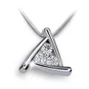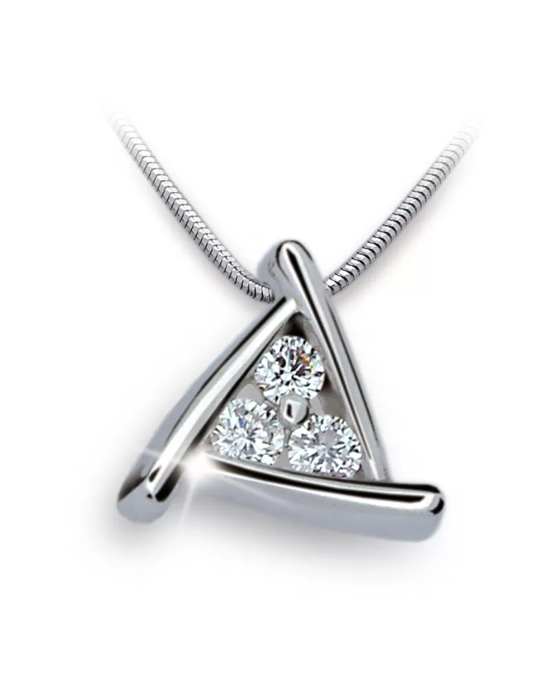 Nadčasový přívěsek ve tvaru trojúhelníku pozvedne Váš dekolt. Přívěs je zdoben prvotřídními diamanty v briliantovém brusu, který zajišťuje maximální brilanci vybroušených facet, dokonale odráží světlo a neuvěřitelně září z každého úhlu pohledu! Vsazování diamantů provádějí naši nejzkušenější mistři zlatníci ručně pod mikroskopem s přesností na 0,01mm a proto nehrozí vypadnutí kamínků jako to bývá u strojně vyráběných přívěsků. Šperk je vyroben z bílého čtrnáctikarátového zlata - 585/1000.