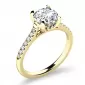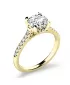 Tento diamantový prsten je vyroben ze žlutého čtrnáctikarátového zlata - 585/1000 v lesklé povrchové úpravě. Prsten má jeden hlavní dominantní diamant kulatého briliantového brusu, který je uchycený do čtyřkrapnové korunky. Toto uchycení pomůže diamantu dokonale vyniknout jeho kráse a brusu. Krásným detailem je vsazení diamantů i na boku korunky. Po stranách v obroučce prstenu je vsazeno 14 diamantů, které prsten zjemňují. Prsten ohromí z každé strany. Všechny diamanty jsou vybroušeny briliantovým brusem, který zajišťuje maximální brilanci vybroušených facet, dokonale odráží světlo a neuvěřitelné září z každého úhlu pohledu! Díky skladbě a stylově čistému vsazení diamantů, vyniká prsten krásnou brilancí kamenů. Vsazování diamantů do prstenů provádějí naši nejzkušenější mistři zlatníci ručně pod mikroskopem s přesností na 0,01mm a proto nehrozí vypadnutí kamínků jako to bývá u strojně vyráběných prstenů.
