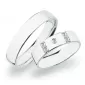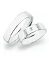 Snubní prsteny moderního designu v mírně půlkulatém profilu vyrobeny z bílého čtrnáctikarátového zlata 585/1000 v lesklé povrchové úpravě. Snubní prsteny mají vnitřní Fit Profil - půlkulatou vnitřní stranu pro příjemnější nošení, nasazování a sundavání. V dámském prstenu je vsazeno pět kulatých zirkonů popř. diamantů briliantového brusu.
