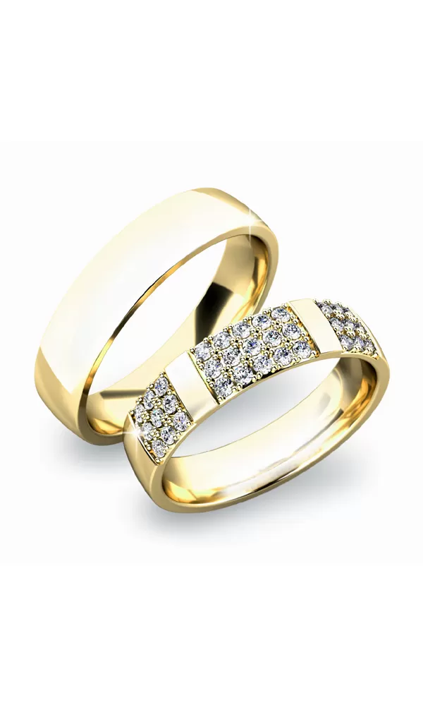 Luxusní snubní prsteny v mírně půlkulatém profilu jsou vyrobeny z bílého čtrnáctikarátového zlata 585/1000 v lesklé povrchové úpravě v nadčasovém designu. Snubní prsteny mají vnitřní Fit Profil - půlkulatou vnitřní stranu pro příjemnější nošení, nasazování a sundavání. V dámském prstenu je vsazeno třicet tři kulatých zirkonů s briliantovým brusem Signity star, který dodává zirkonům oslnivou brilanci. Do snubních prstenů si můžete nechat vsadit také diamanty. Kameny jsou vsazeny "do zrnek". Vsazování zirkonů i diamantů provádějí naši nejzkušenější mistři zlatníci ručně pod mikroskopem a proto nehrozí vypadnutí kamínků jako to bývá u strojně vyráběných snubních prstenů.