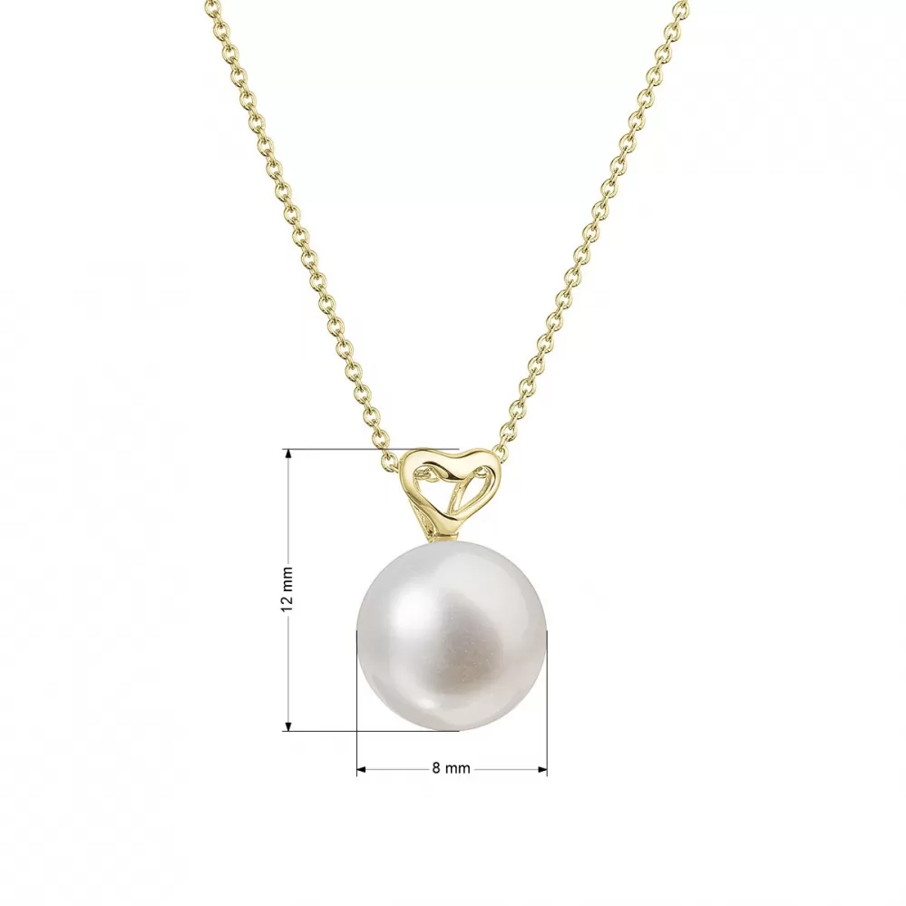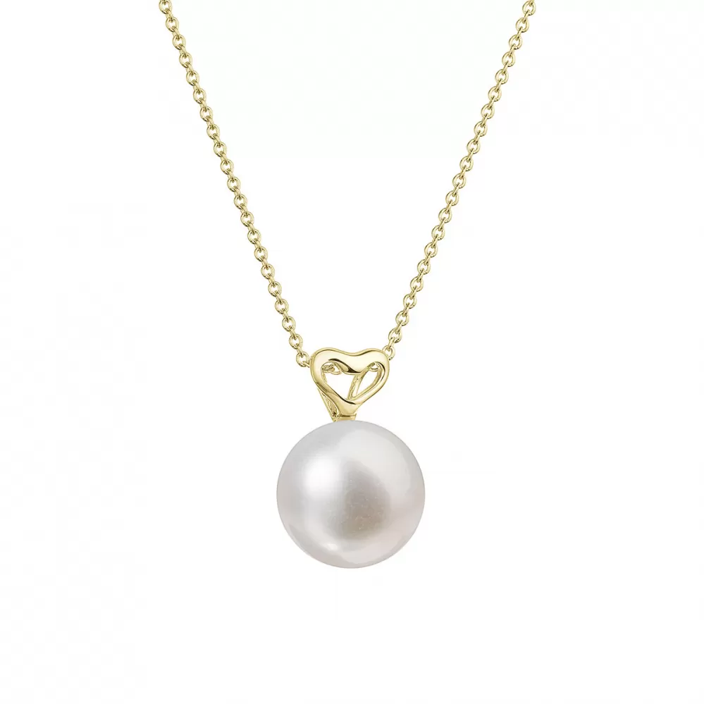 Zlatý 14 karátový náhrdelník žluté zlato srdíčko s bílou říční perlou 92P00043
