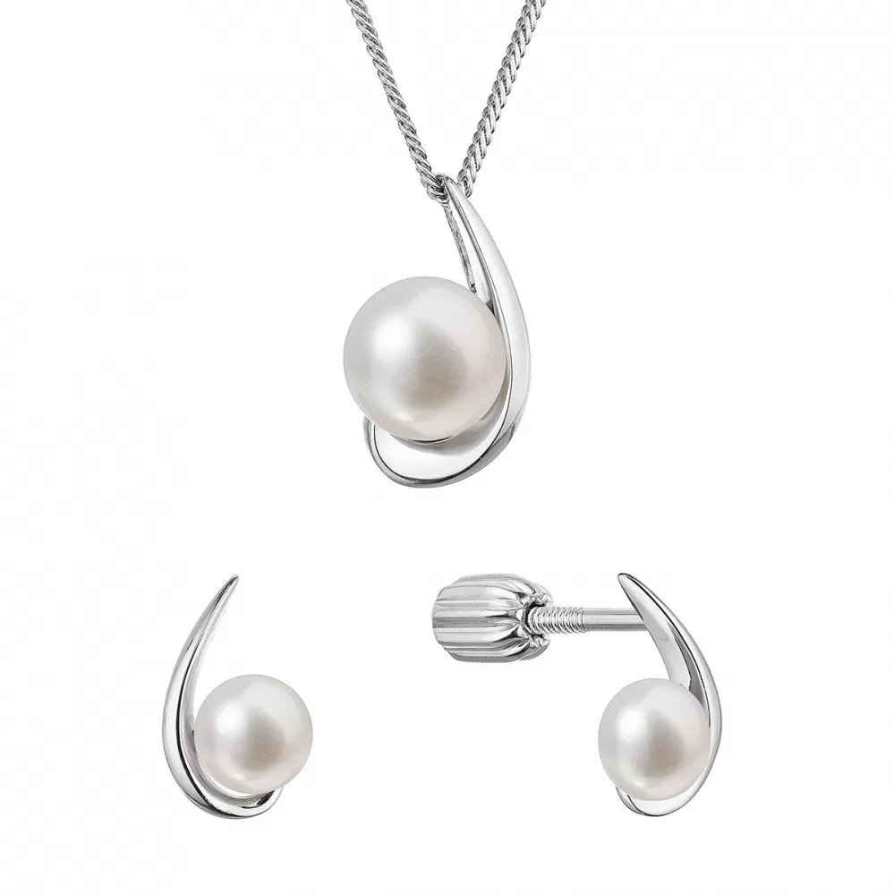 Stříbro v této soupravě není jen kovem, ale vyjádřením nadčasové elegance. Bílá říční perla, použitá jako centrální prvek, dodává každému kusu jedinečný nádech luxusu.