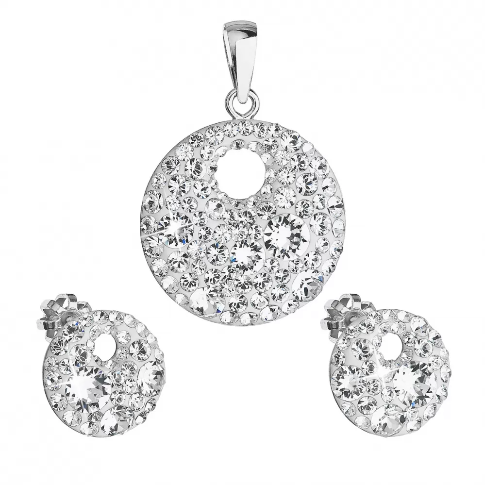 Sada šperků s krystaly Preciosa náušnice a přívěsek bilé kulaté 39148.1 crystal
