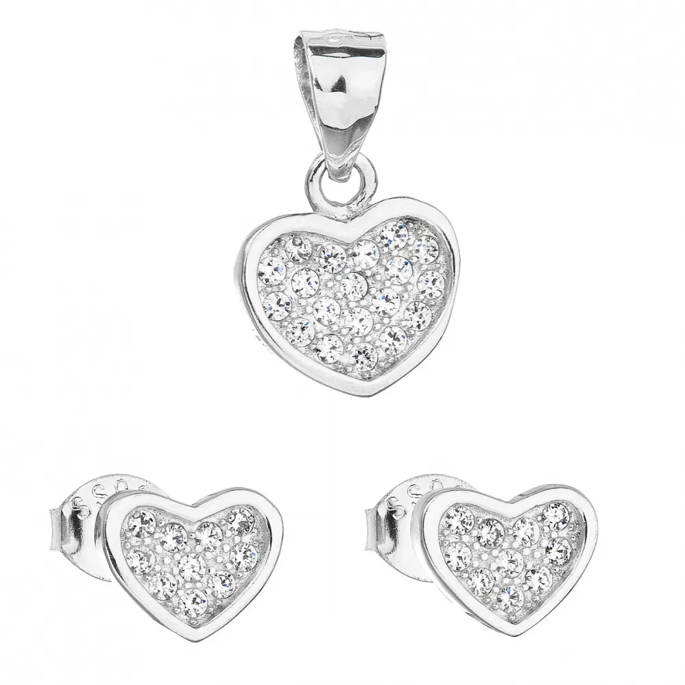 Sada šperků se zirkonem náušnice a přívěsek bílé srdce 19011.1